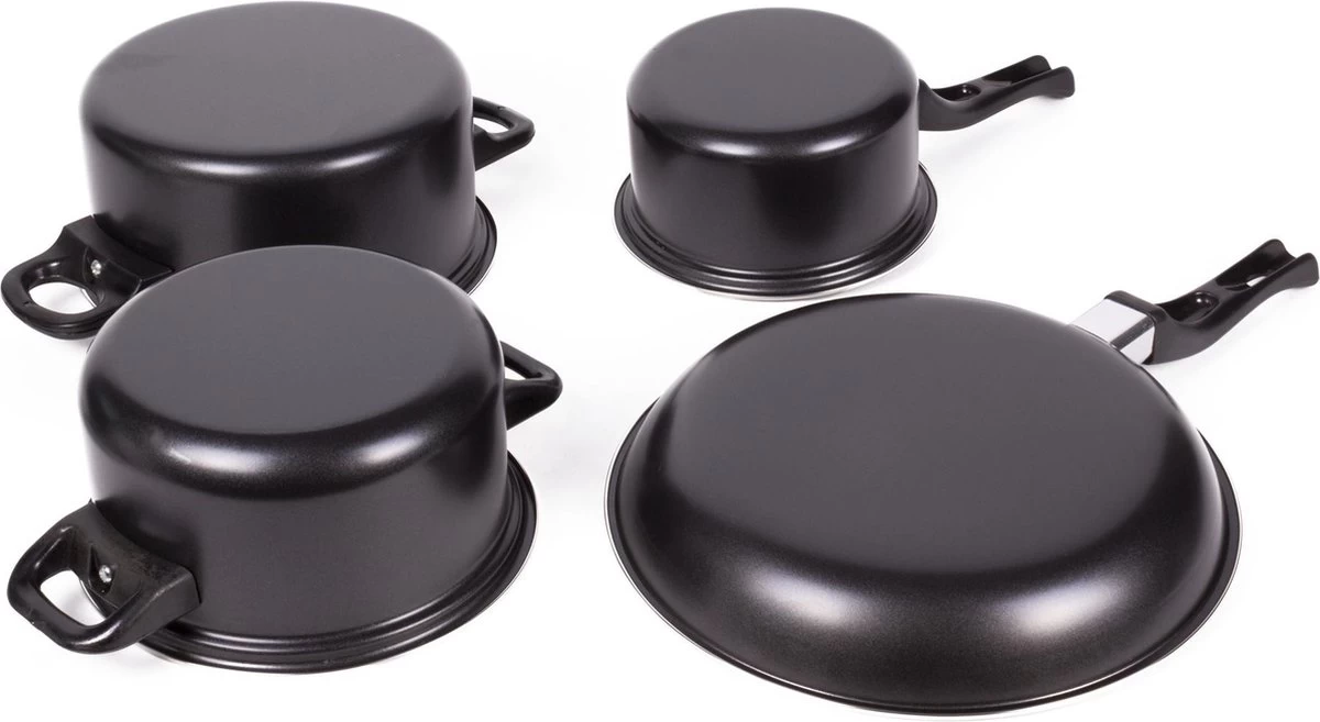 Wil jij een complete pannenset zodat je voor iedere maaltijd de juiste pan op de camping hebt staan? Kies dan voor deze complete pannenset van Benson! De pannen zijn geschikt voor alle warmtebronnen behalve open vuur en inductie. De pannen zijn gemaakt van 0.8 mm carbon staal en zijn voorzien van een volledig PTFE vrije antiaanbaklaag. Doordat de pannen in elkaar gestapeld kunnen worden nemen ze weinig opbergruimte in beslag.