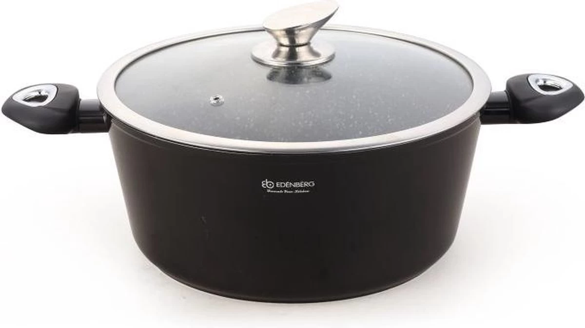 Deze prachtige pannenset van EdΓ«nbΓ«rg wordt geproduceerd onder de strengste Duitse normen en met het beste aluminium. De bodem is bedekt met maar liefst 3 lagen marmer met een mooie zwarte binnenkant die niet verkleurd. Dankzij de dikke bodem zijn de pannen zeer duurzaam en wordt het eten gelijkmatig verwarmd. De pannen kunnen worden gebruik op een kookplaat en ook op een fornuis met inductie.