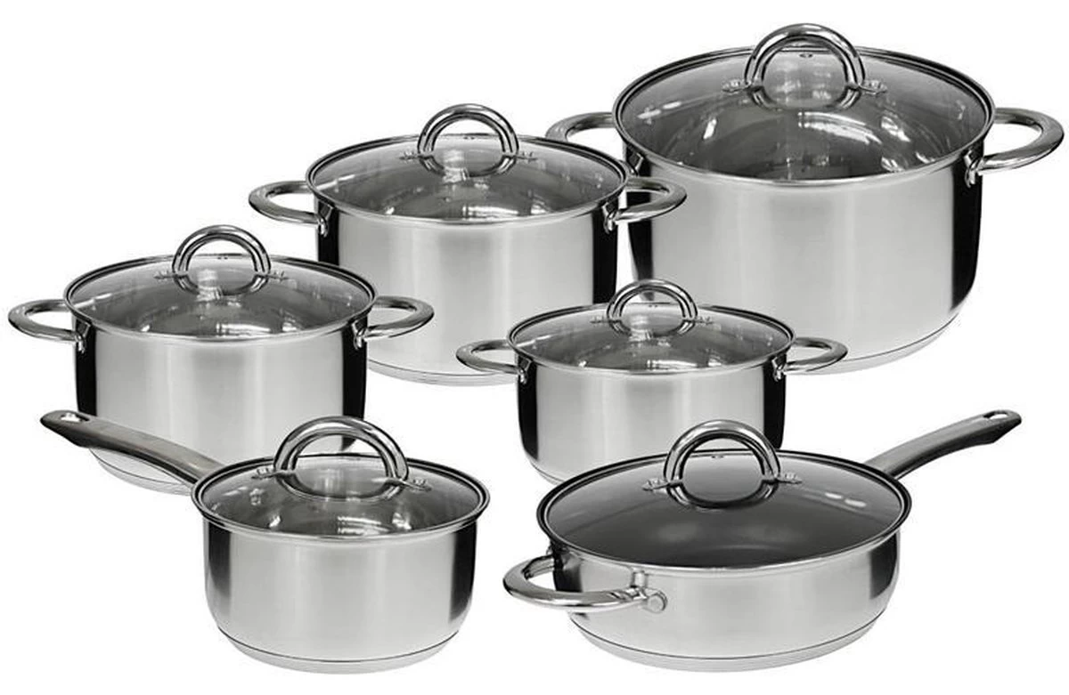 Prachtige 12-delige pannenset van hoge kwaliteit. Een set gemaakt van hoogwaardig roestvrij staal. Product gerenommeerde merk Edënbërg . Dankzij de speciale bodem wordt de warmte snel verdeeld, waardoor je energie bespaart. In de pan zit een praktische maataanduiding voor gebruiksgemak.