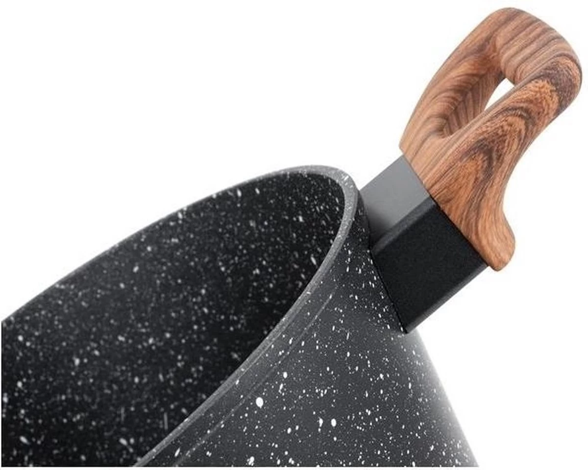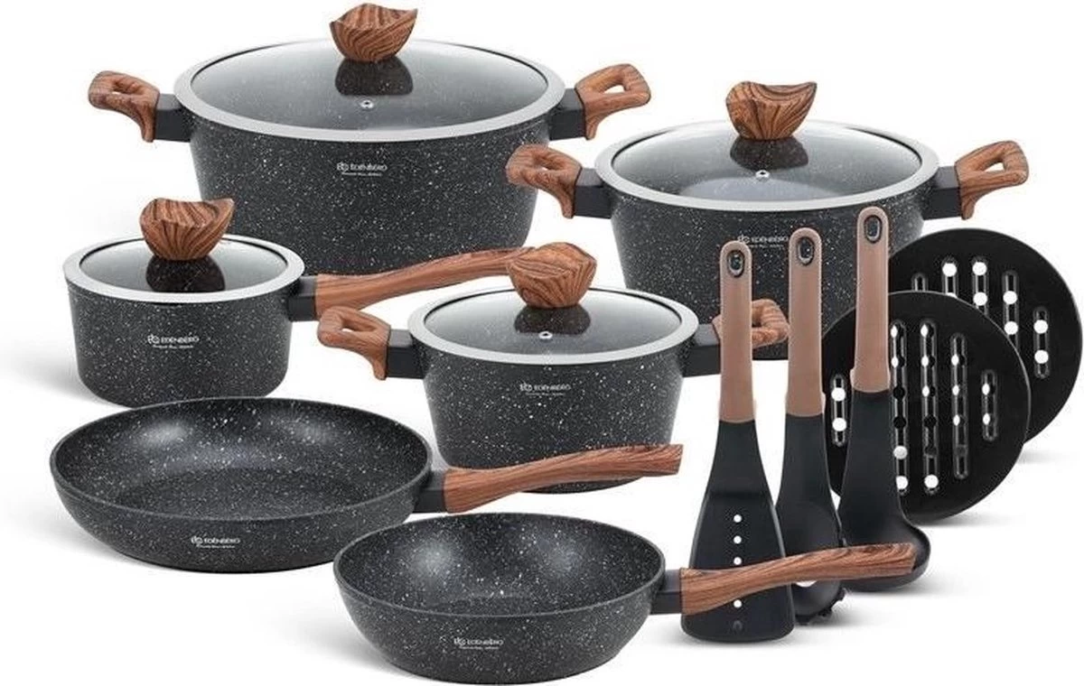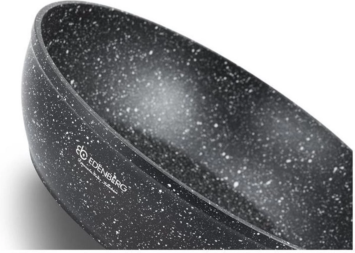 Deze prachtige pannenset van EdΓ«nbΓ«rg wordt geproduceerd onder de strengste Duitse normen en met het beste aluminium. De bodem is bedekt met maar liefst 3 lagen marmer met een mooie zwarte binnenkant die niet verkleurd. Dankzij de dikke bodem zijn de pannen zeer duurzaam en wordt het eten gelijkmatig verwarmd. De pannen kunnen worden gebruik op een kookplaat en ook op een fornuis met inductie.