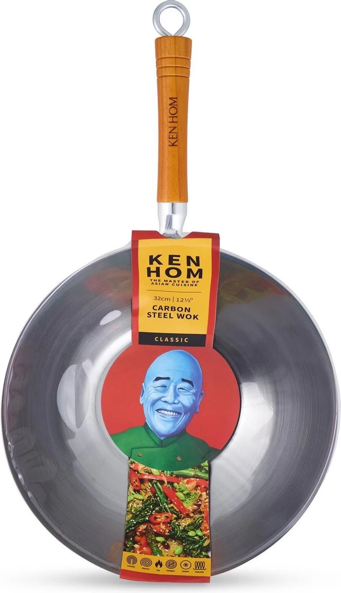 Ideale wok om Aziatische gerechten op extreem hoge temperaturen te roerbakken met een minimaal gebruik van olie en een optimale karamelisatie van de ingrediënten. Deze traditioneel Chinese wok van Ken Hom is vervaardigd uit dun maar extreem sterk koolstofstaal, dat heel snel en efficiënt hitte absorbeert en deze op een gelijkmatige manier verdeelt. Voor het eerste gebruik moet men de wok inbranden om het vormen van een natuurlijke anti-aanbaklaag te stimuleren. Naarmate de wok vaker wordt gebruikt, ontwikkelt het koolstofstaal een donker patina met natuurlijke antikleef-eigenschappen.