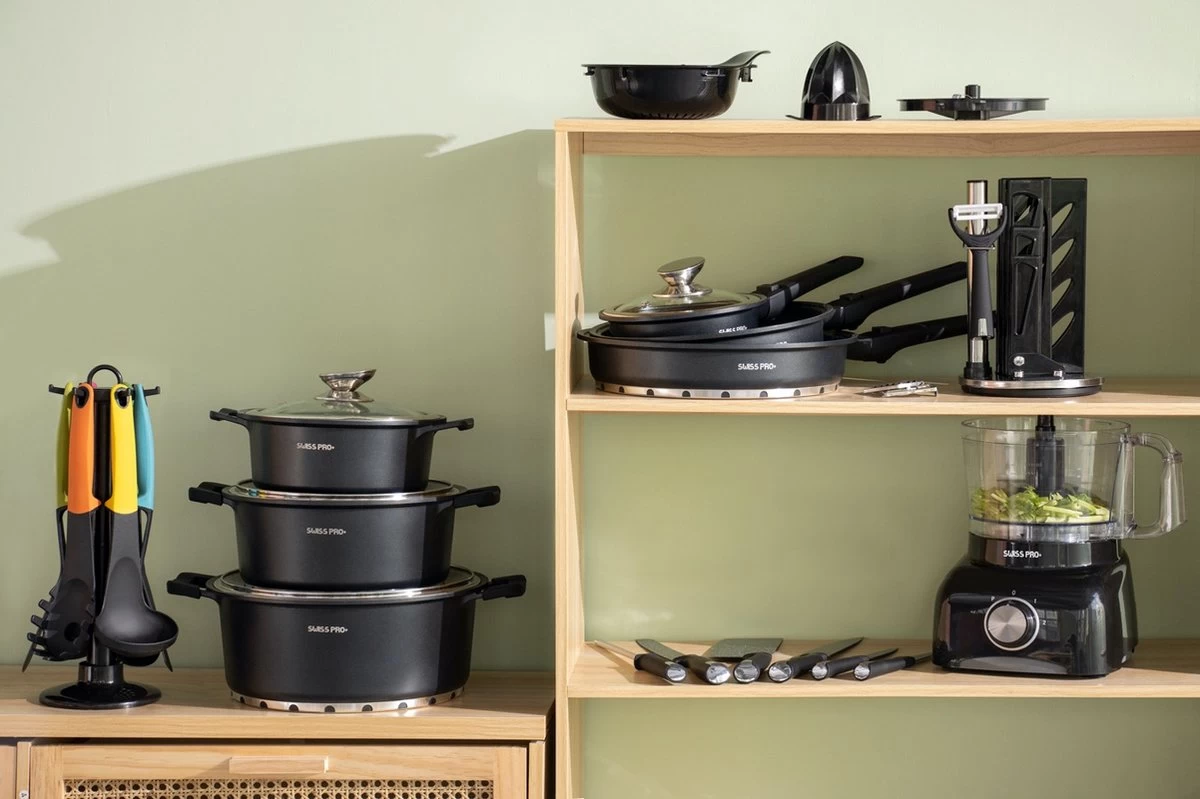 Een zeer uitgebreide set van Swiss Pro+ is een goede eerste stap naar goed en gezond koken. De pannen hebben een hoogwaardige marmercoating en zijn geschikt voor alle warmtebronnen, inclusief inductie en oven. Kortom een ??pannenset die je niet mag missen in huis!